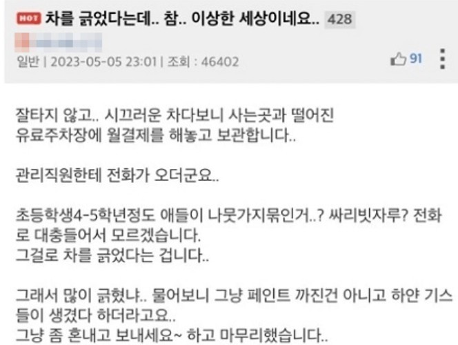 The mother of a 200 million won car scratch