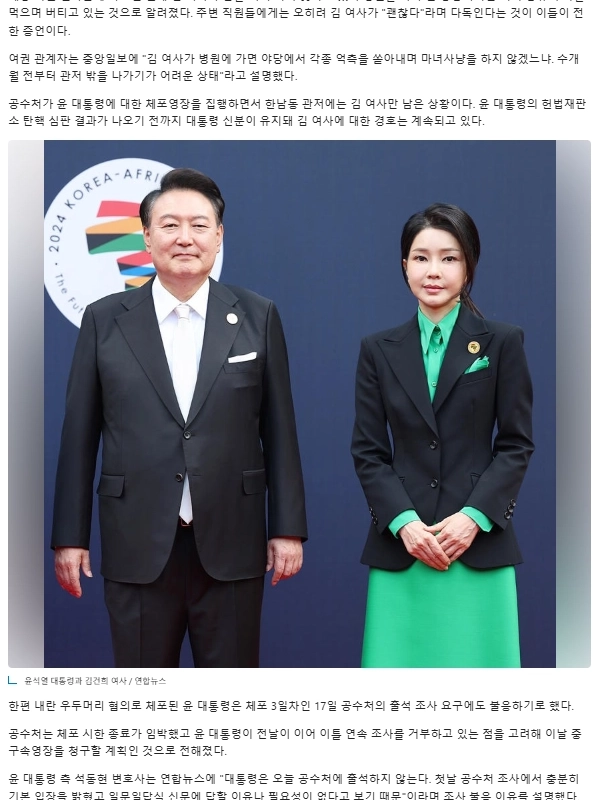 08:44 01/17/2025 First lady Kim Kun-hee, left alone at the official residence, received worrying news.
