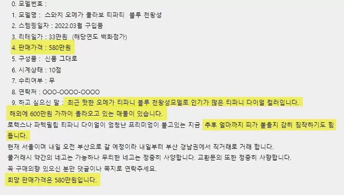 Omega watch that was posted on Used World for 3.5 million won jpg