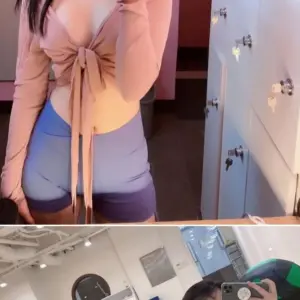 A pretty sister who takes a picture while exercising