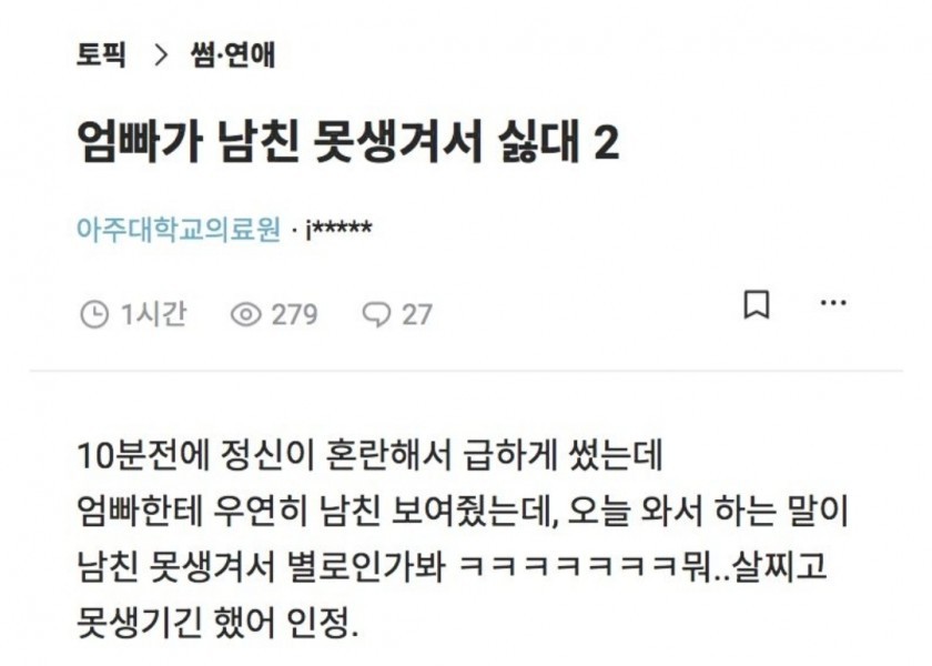 My mom doesn’t like my boyfriend because he’s ugly. Blind