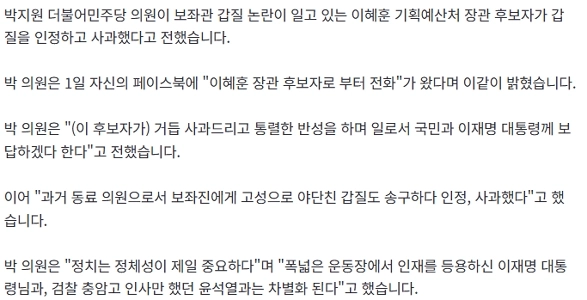 19:04 01/1/2026 Park Ji-won “”””Lee Hye-hoon called… I admit to my abuse of power and tell Lee that I will repay him with my work.””””