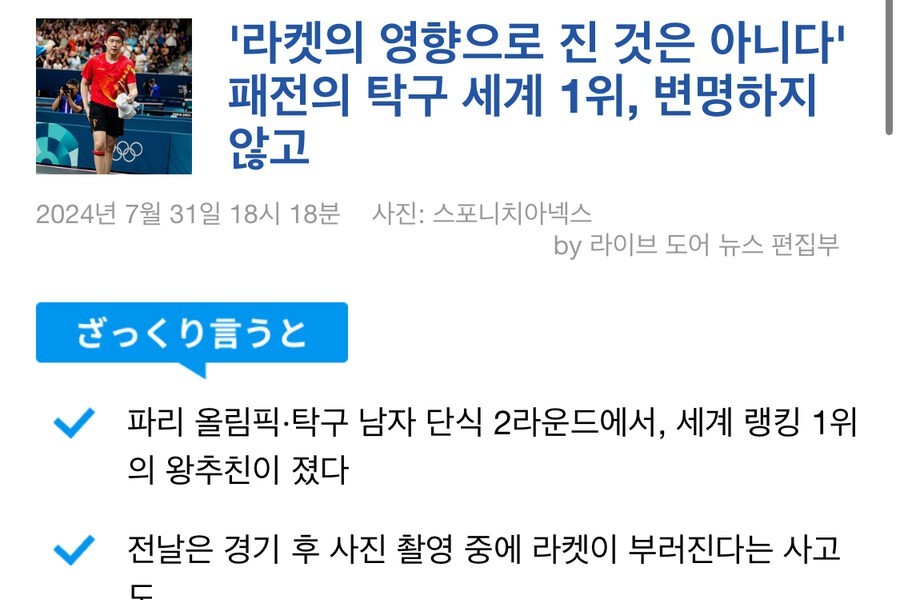 12:59 08/3/2024 Current status of world-ranked Chinese table tennis player who broke his racket according to reporters
