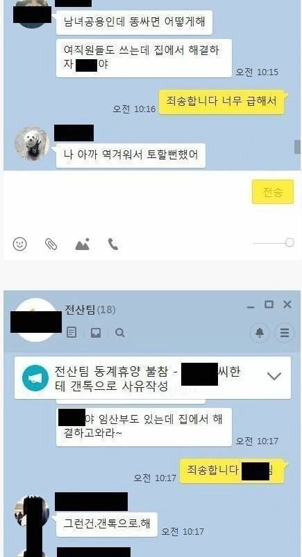 Company group chat room after pooping