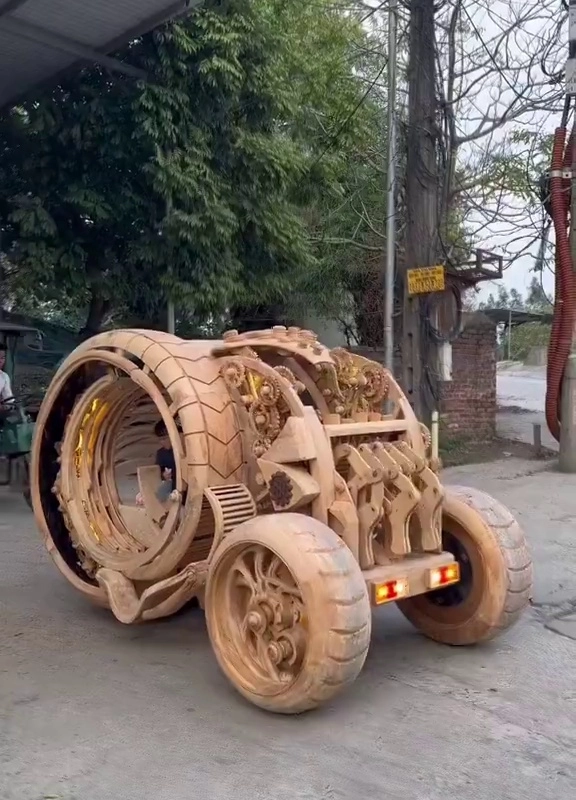 (SOUND)Awesome car made by my dad who is a woodwork fanatic.mp4