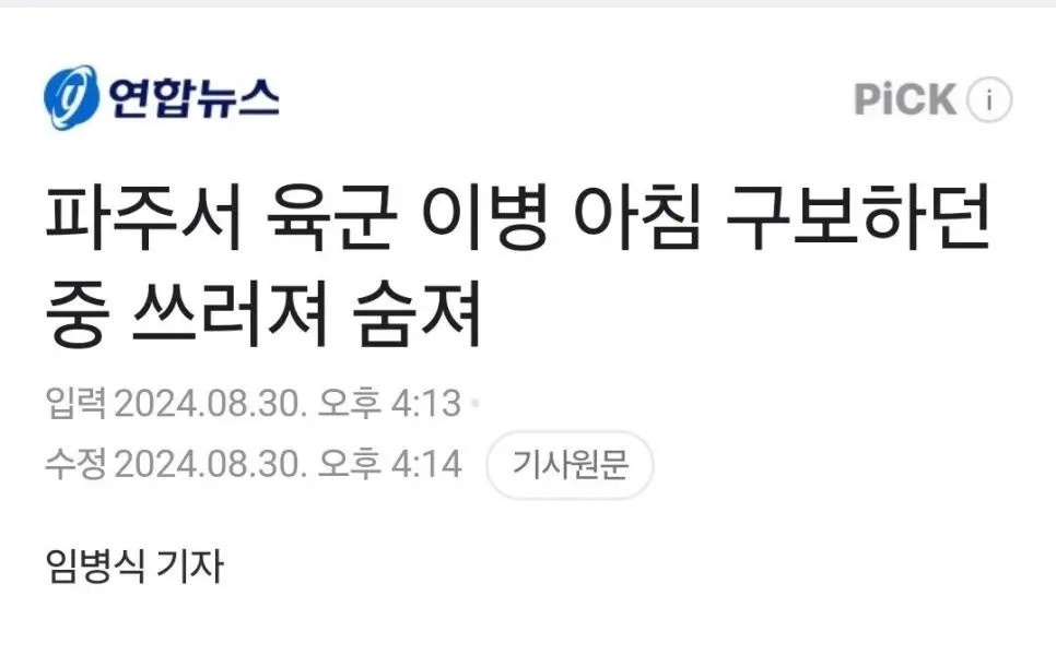 20:50 11/26/2024 20-year-old Army private dies after falling during training in mountainous area of Hongcheon