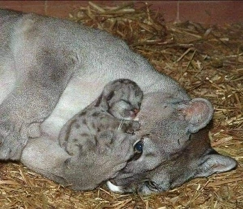 Baby cougar’s first hug with mom
