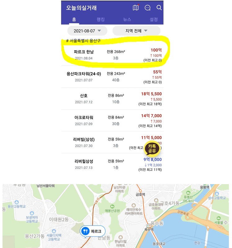 Apartment in Seoul, with an actual transaction price of 10 billion won.
