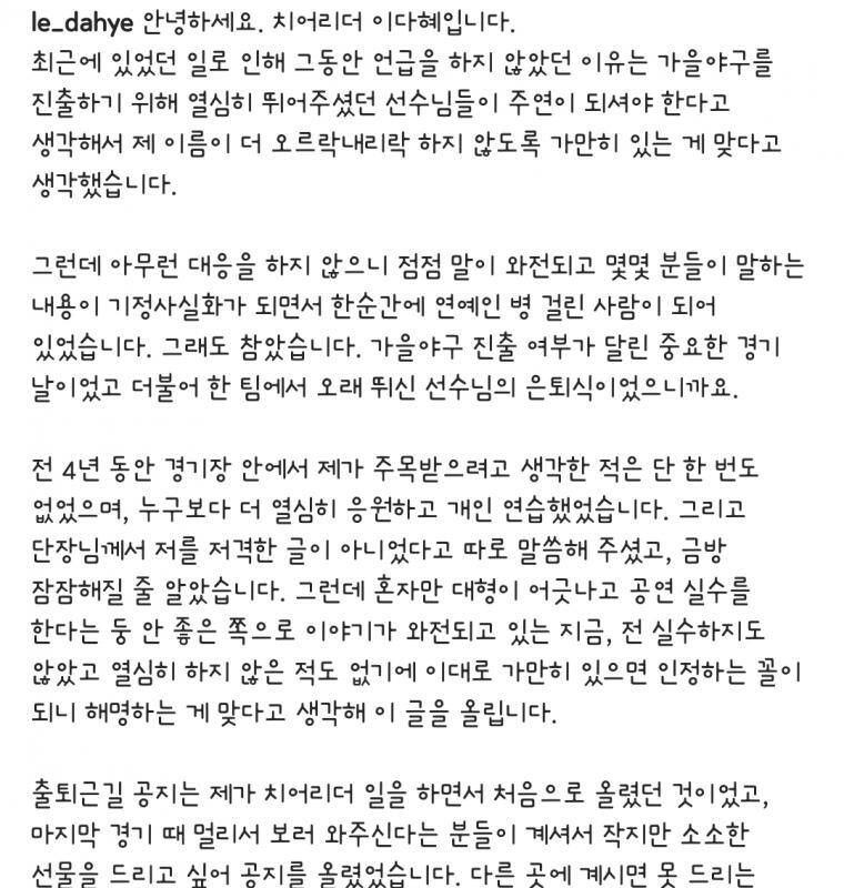 Lee Da-hye Retires as a Cheerleader