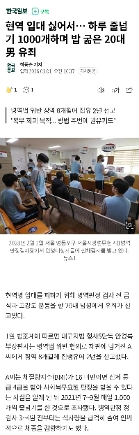 22:28 12/31/2025 Because I don’t want to enlist in active duty… Man in his 20s found guilty of skipping 1,000 ropes a day and skipping meals