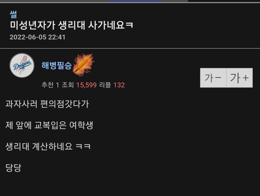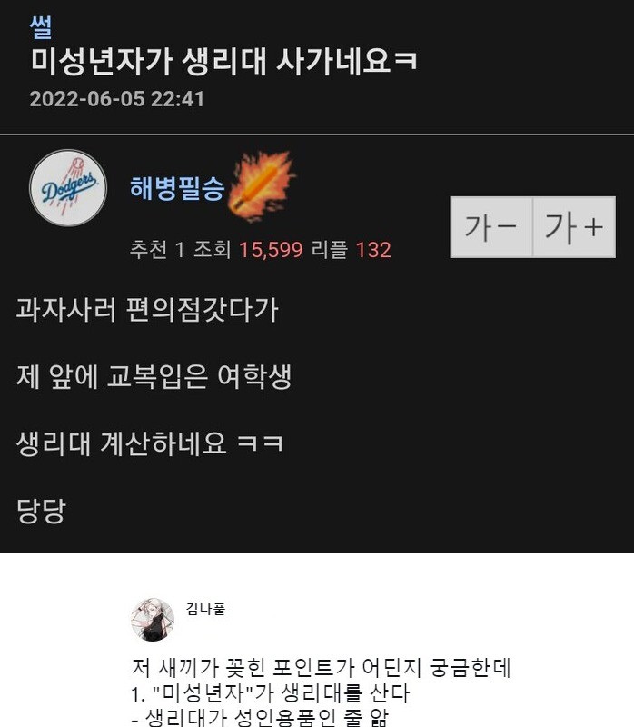 미성년자가 생리대를 사가네요