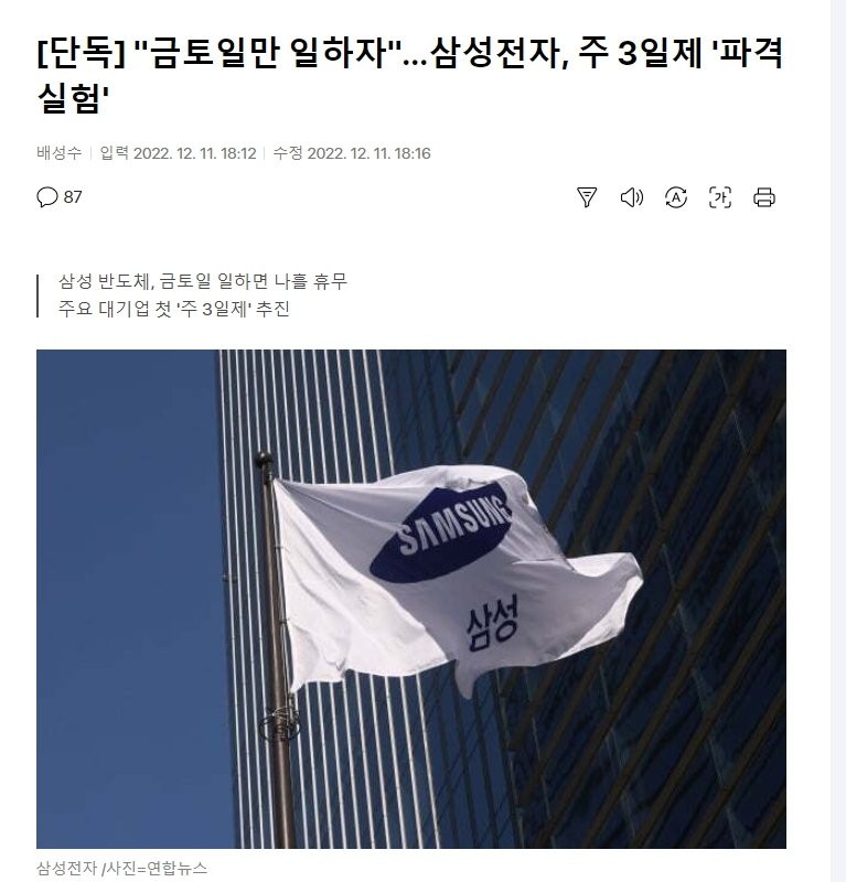 06:26 12/12/2022 Let’s just work Friday, Saturday and Sunday…Samsung Electronics’ three-day week is shocking