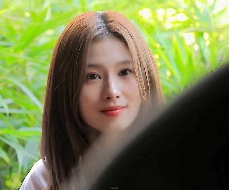 23:52 11/29/2024 TWICE’s Sana’s cleavage greeting in a white bra top decorated with sparkling flowers