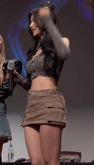 TWICE SANA, a checkered skirt with low resolution