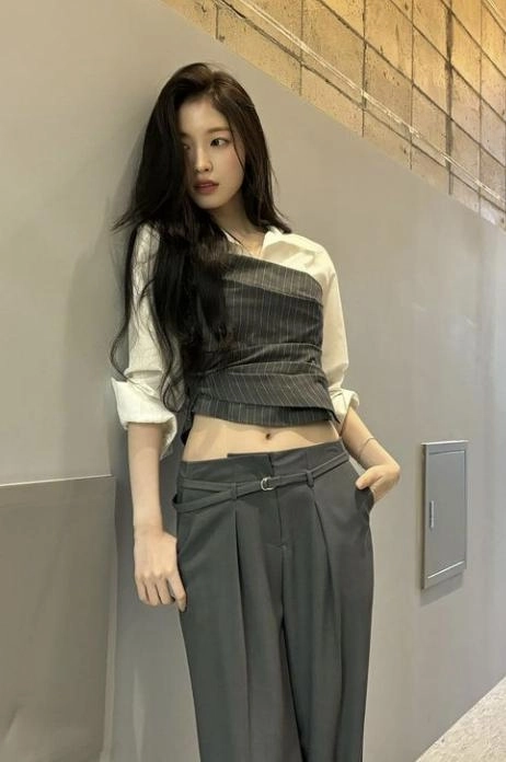 08:31 10/26/2024 Oh My Girl’s Arin, who flips her hair, shows off her abs in a string tank top and crop top