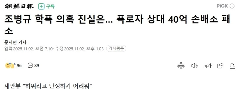 13:05 11/2/2025 Jo Byeong-gyu’s recent status in filing a lawsuit for damages against those who exposed suspicions of school violence