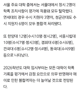 16:06 11/2/2025 Six major national universities, including Seoul National University, rejected 45 perpetrators of school violence