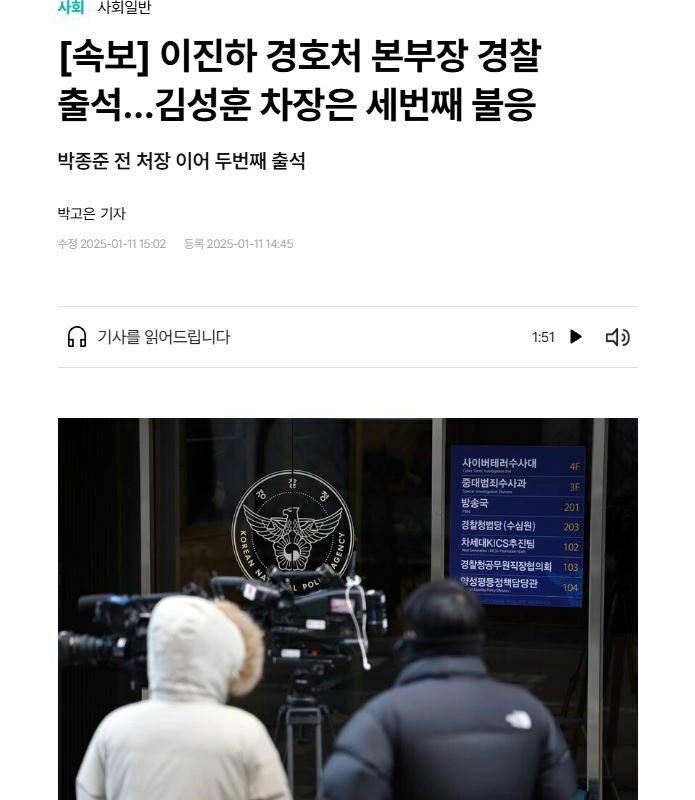 20:51 01/11/2025 [Breaking News] Lee Jin-ha, head of the National Security Agency, appears at the police station