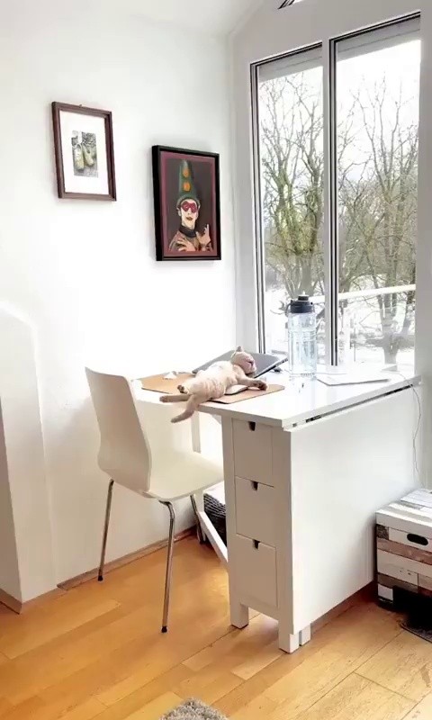 Lying on the desk in a seductively.