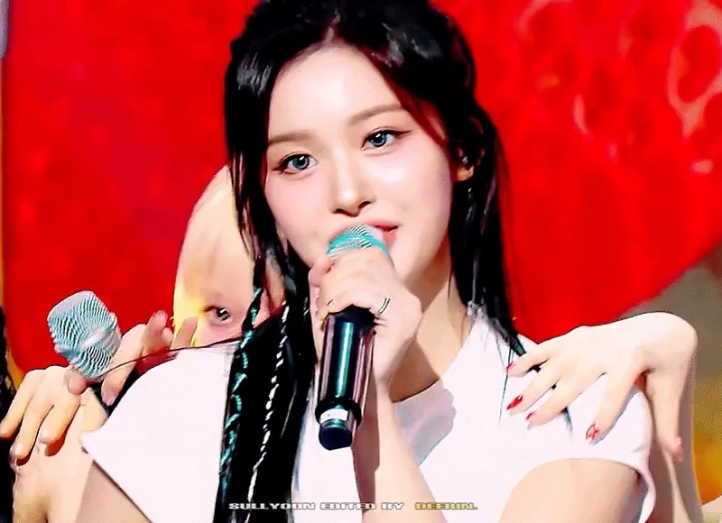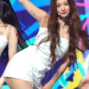 20:32 11/27/2024 Nmix’s Seolyun practicing for the concert with her white t-shirt rolled up, white abdomen and belly button
