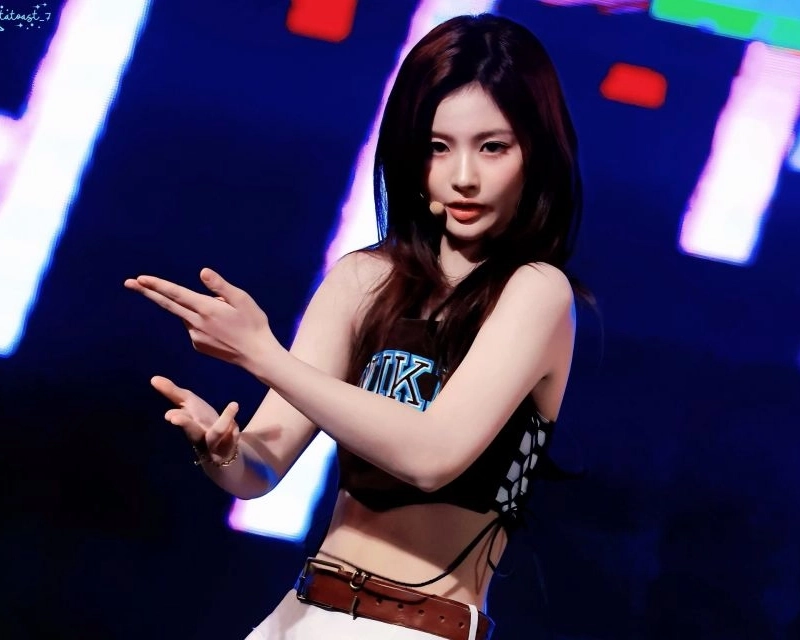 22:35 11/10/2024 Enmix Seolyoon’s blue pleated skirt, taken slightly from below, exposes her buttocks