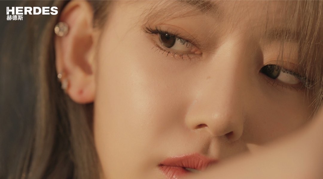Le Seraphim Heo Yoon-jin’s well-willed white tube top arm posture