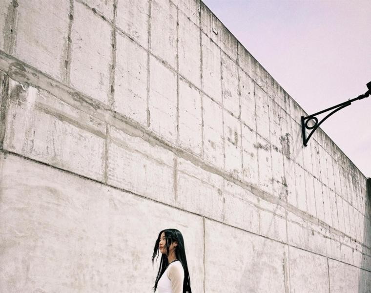 LeSeraphim Heo Yoonjin with red bandana fashion hair. Cool armpits