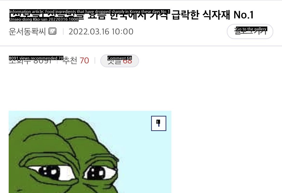 No.1 ingredient that has dropped in price in Korea recently.