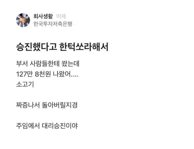 He asked me to treat him because he got promoted.