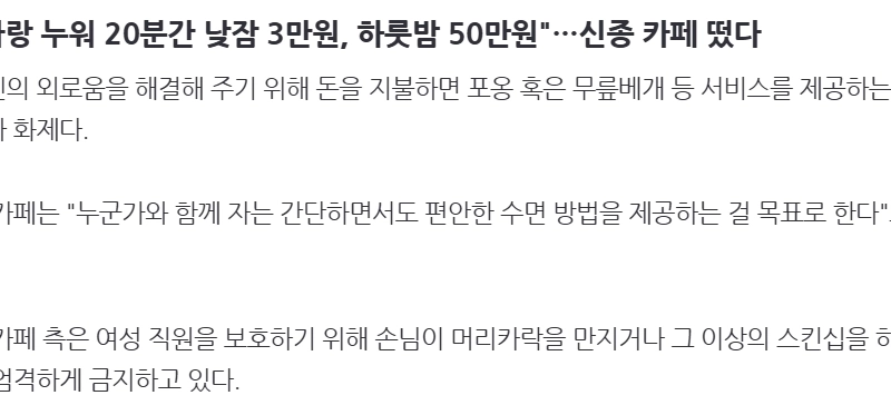 14:15 01/14/2025 “”””30,000 won for a 20-minute nap with a woman, 500,000 won for one night””””… A new cafe has appeared