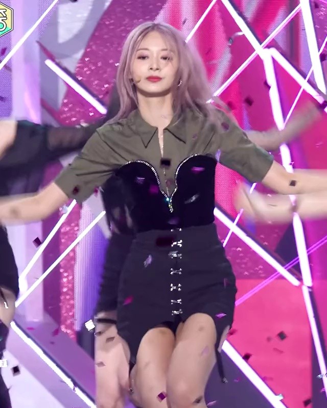 TWICE TZUYU, an H-line skirt with a unique design