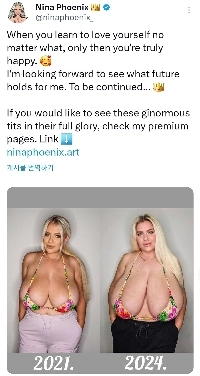 The composition boasting the size of the breasts