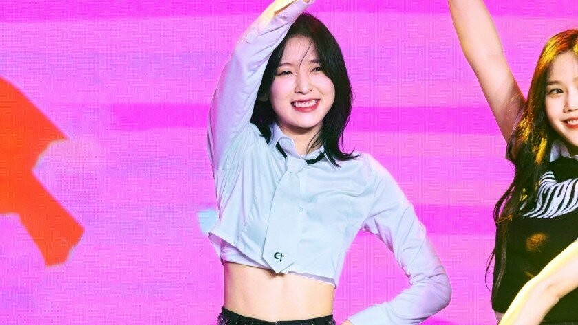 Shuhua from (G)I-DLE with short skirts and thighs