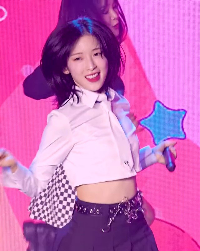 YUNA from Brave Girls with a short skirt and an upright muscle