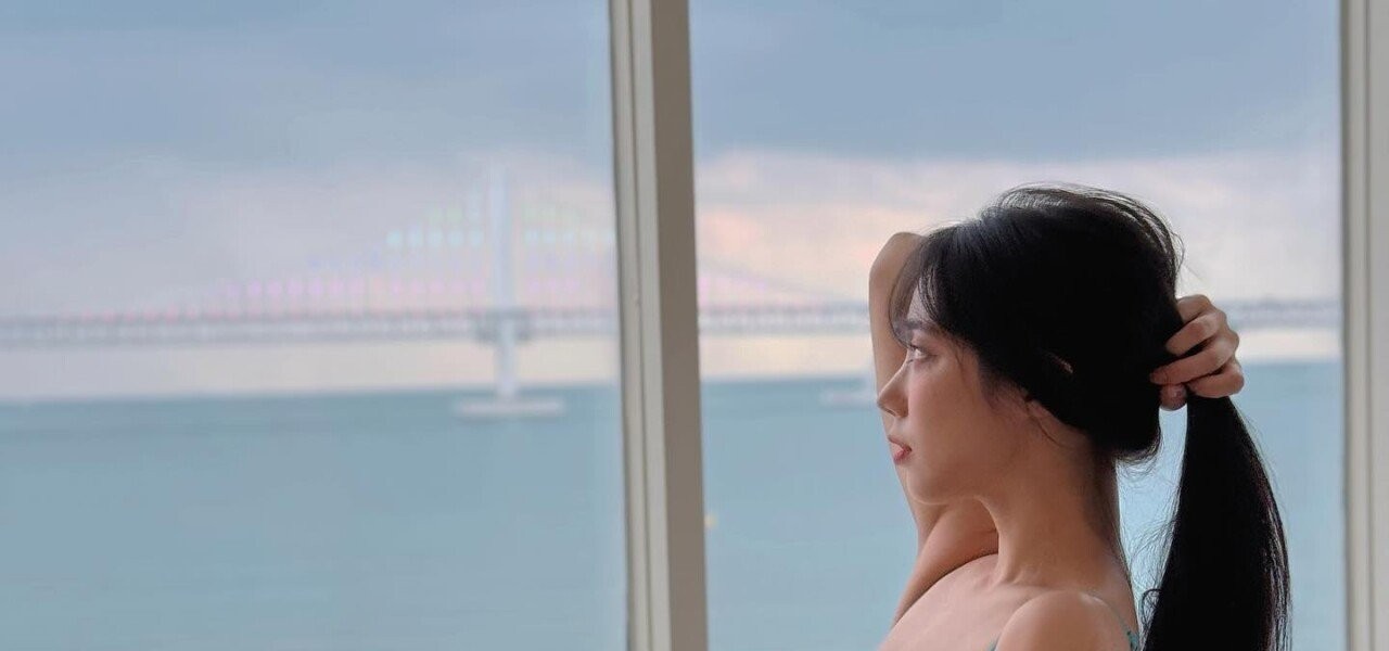 01:30 02/1/2024 (SOUND)Full villa broadcast Sky blue X-shaped halter neck string bikini wearing gong’s chest bone
