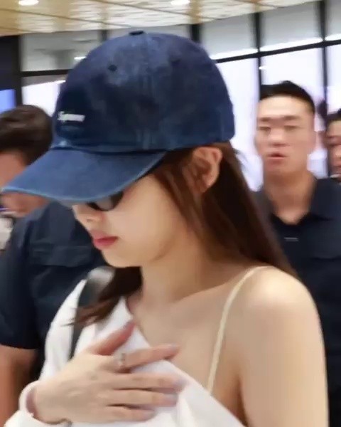 07:45 07/30/2024 Twice Mina’s airport fashion wearing a sexy black strap slip under a white off-shoulder top