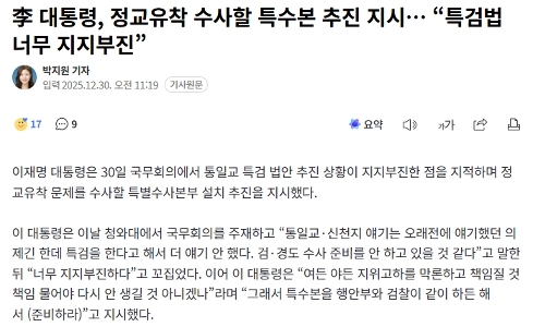 13:19 12/30/2025 President Lee orders special investigation to investigate collusion between government and government… “The special prosecution law is too sluggish.”