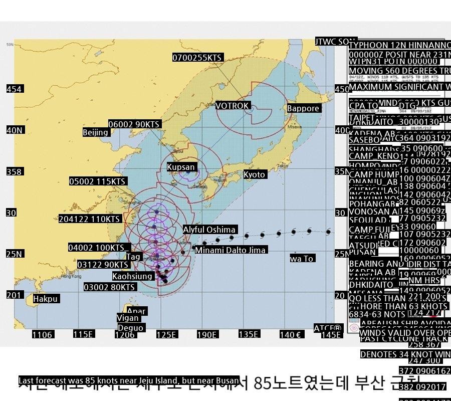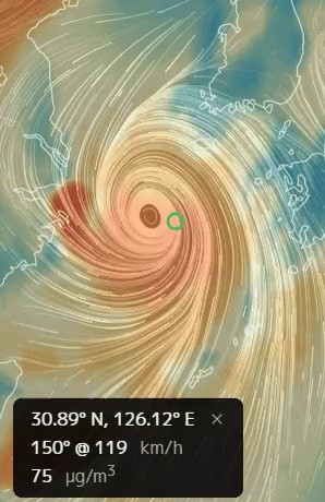 11:42 09/3/2022 Contrary to expectations, the typhoon has become stronger near Hinnamno Taiwan, so the intensity of the typhoon during the landing in Korea is