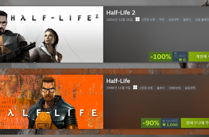 Steam Half Life 2 100% off.