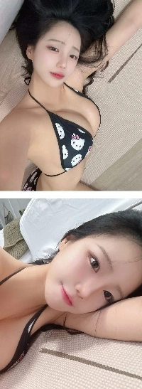 03:59 10/9/2025 Eddie Lin’s boyfriend’s point of view lying on his side wearing a Hello Kitty black string bikini