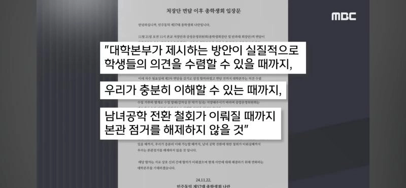 19:44 11/25/2024 Dongduk Women’s University and Student Council 3rd meeting collapsed… Occupation of main building continues