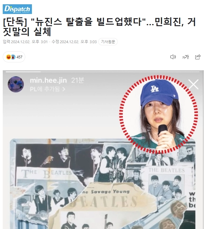 07:16 12/2/2024 “”””We built up the escape from New Jeans””””… Min Hee-jin, the truth of lies – Dispatch –
