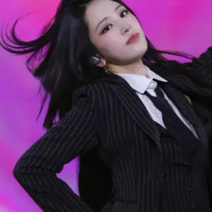 Vertical striped hot pants, suit fit, Ive Ahn Yu-jin, firm buttocks and back.