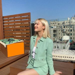 01:56 08/2/2023 Flower decoration denim ultra-mini wear slightly bent OH MY GIRL Arin Mongsil Chest Bone