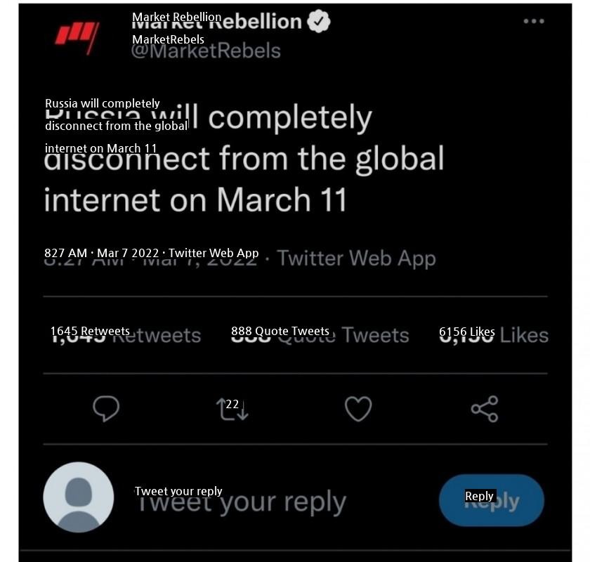 Russia changed its system to an intranet system from March 11th.