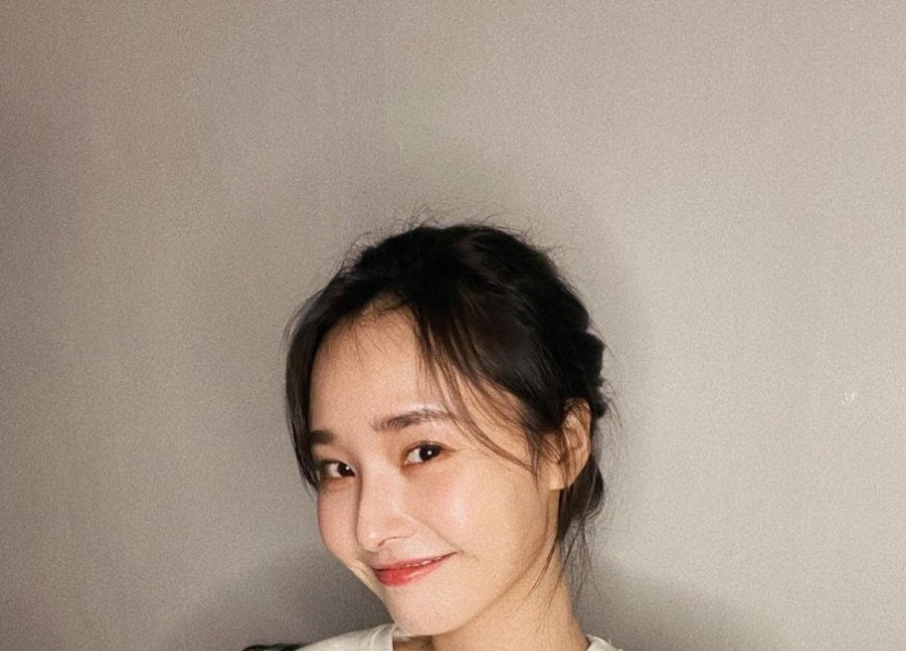 14:54 06/6/2024 tripleS Kim ChaeYeon radio blue ribbed t-shirt on the way home from work tripleS Kim ChaeYeon