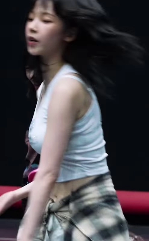10:16 09/8/2024 A white tank top with a heavy bounce during dance practice at Espa Carina with a bare face.