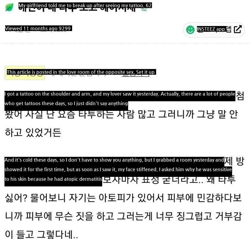 My sister broke up because of the tattoo