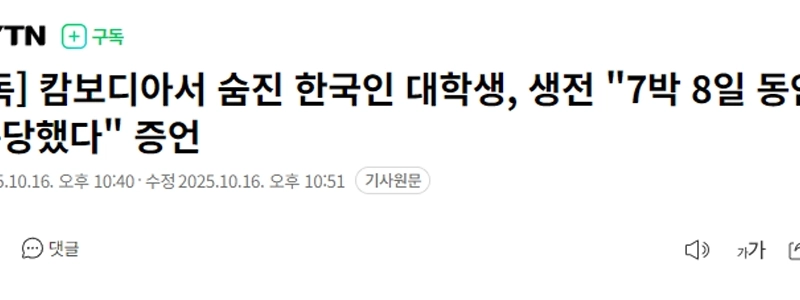 12:57 10/16/2025 [Exclusive] Korean college student who died in Cambodia testified that he was “tortured for 8 days and 7 nights” while alive