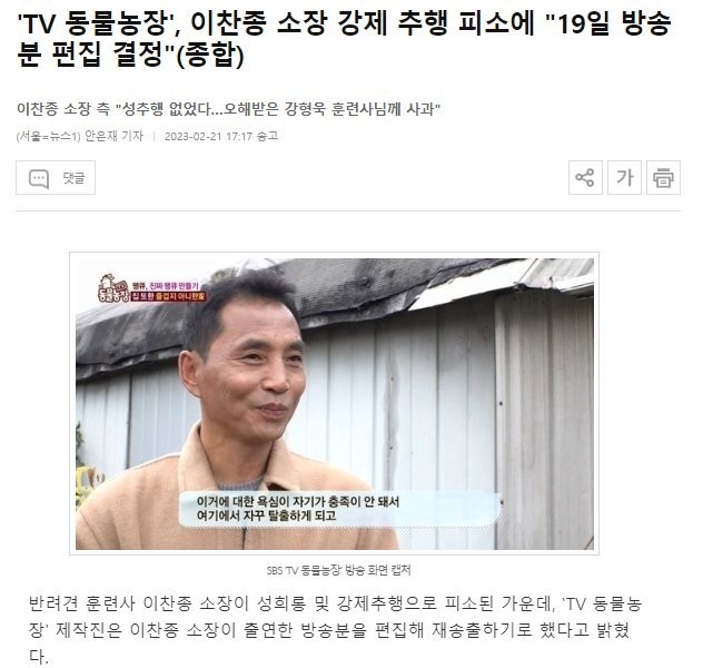TV Animal Farm Director Lee Chan-jong’s appearance was edited out.